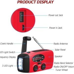 - Notfall Powerbank: Dieses kurbel radio kann auch bei Stromausfall per Hand oder Solarenergie betrieben werden, sodass Sie Ihr stromsparendes Mobiltelefon im Freien aufladen können