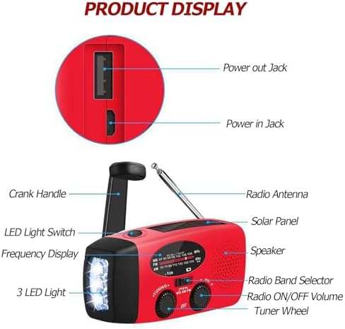 - LED Licht: Das LED Licht dieses solarradio verfügt über 3 LED Lampenperlen, die in dunklen Umgebungen für Helligkeit sorgen können.