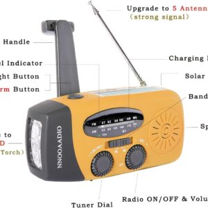 Kurbelradio, Solar Notfallradio, AM/FM Wetterradio 2000mAh Power Bank wiederaufladbar, Überlebensradio mit SOS-Alarm, helle LED-Taschenlampe, USB-Ladegerät, für Outdoor Camping Notfall – NNOOAADIO