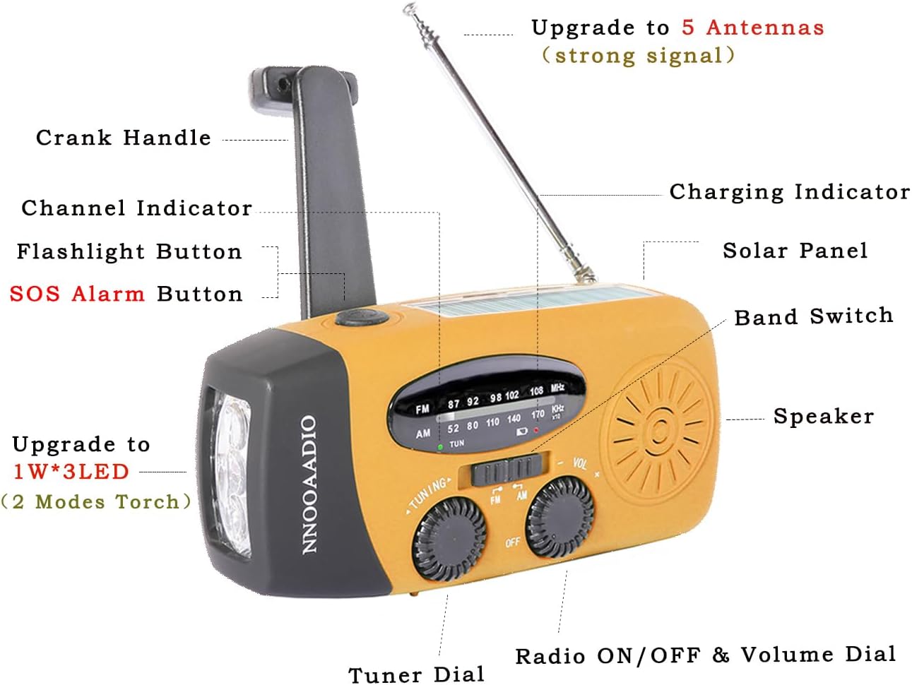 - . [ Emergency Survival Radio] 5 telescopic antennas extends up to 30cm for high sensitivity reception assisted by advanced semiconductor circuitry design and LED signal strength indicator for pin-point tuning accuracy, and the built-in speaker delivers loud and crispy sound, It also comes with a lanyard.