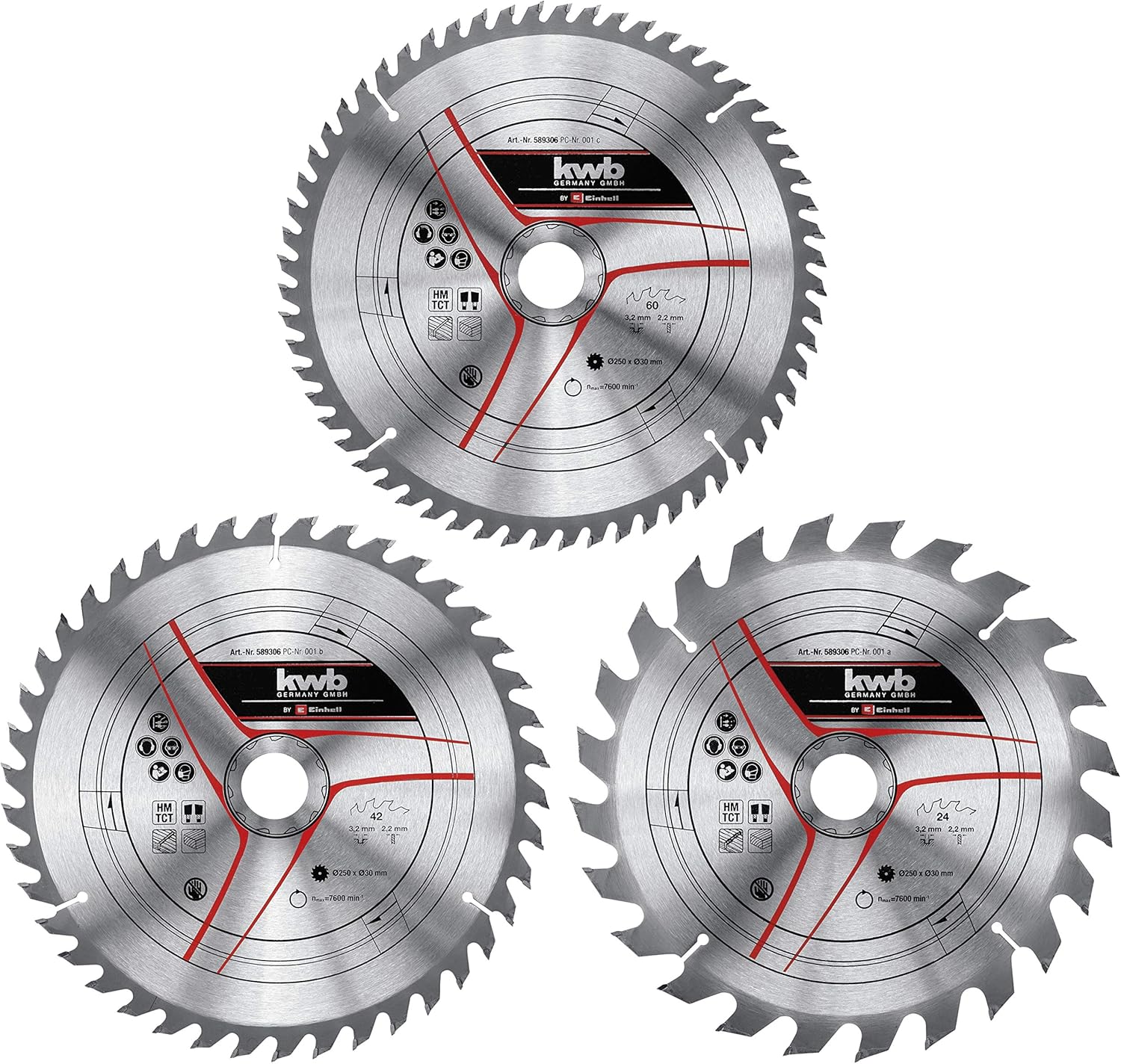 kwb by Einhell Kreissägeblattsatz 3-tlg. 250x30 mm Stat. Sägen-Zubehör (3x HM-Sägeblätter, Ø250x30 mm, 1x 24 Z, 1x 42 Z, 1x 60 Z, passend für Einhell Tischkreissägen und Kapp-Gehrungssägen)kwb by Einhell Kreissägeblattsatz 3-tlg. 250×30 mm Stat. Sägen-Zubehör (3x HM-Sägeblätter, Ø250×30 mm, 1x 24 Z, 1x 42 Z, 1x 60 Z, passend für Einhell Tischkreissägen und Kapp-Gehrungssägen)