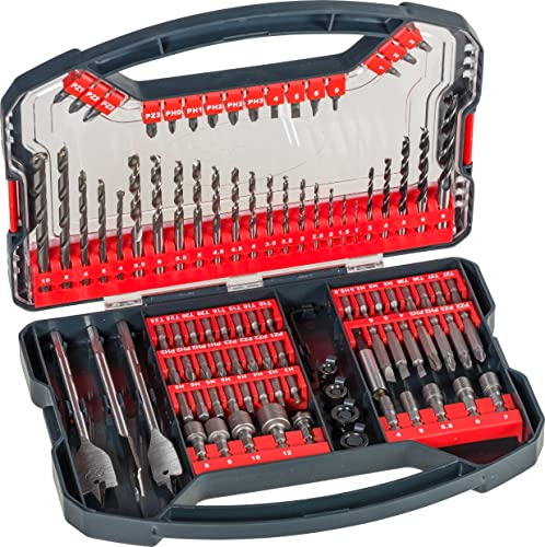 • UMFANGREICHES SET: Enthält Bits, Stecknüsse, Steinbohrer, Holzbohrer, Metallbohrer und Fräsbohrer – alles in einer praktischen Box.