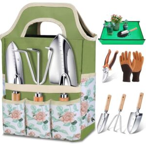 Kynup Gartenwerkzeug Set, 7-teiliges Gartenset aus Edelstahl mit Gartengeräte Tragetasche, Robustes Rostfrei Garten Werkzeug Set, Ideale Garten Geschenk für Frauen, Männer Und Gartenliebhaber