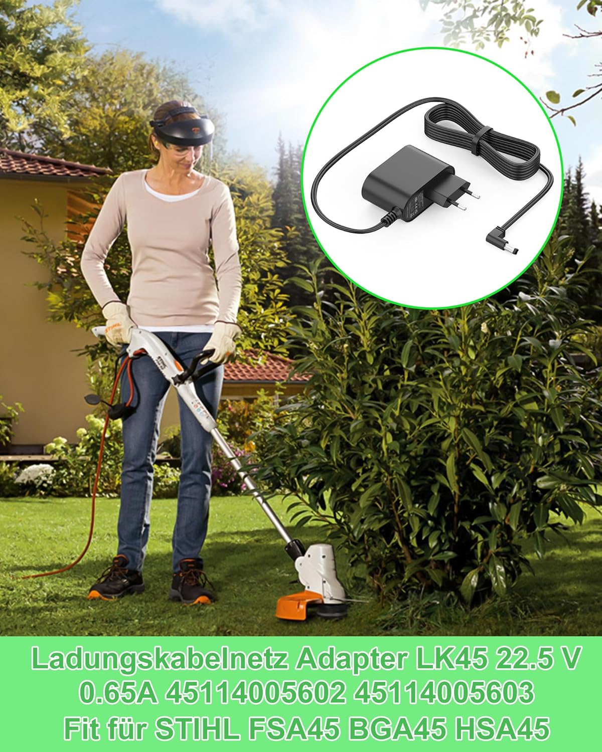 Das Ladekabel AC Adapter LK45 ist die ideale Lösung für Nutzer der STIHL Akku-Gartengeräte FSA45, BGA45 und HSA45. Es ersetzt defekte oder verlorene Original-Netzteile und stellt die volle Funktionsfähigkeit deines Werkzeugs mit exakt abgestimmter Ausgangsleistung wieder her. Damit richtet sich dieses Netzteil an ambitionierte Hobbygärtner und professionelle Landschaftspfleger, die Wert auf einen reibungslosen Ablauf bei der Instandhaltung ihrer Grünflächen legen.