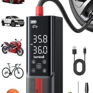 Lamicall Elektrische Luftpumpe, Akku Fahrradpumpe - [Upgrade Metallzylinder] 150PSI Schnelles Tragbare Kompressor mit Digital Manometer & Powerbank, Kabelloser Pumpe für Auto Fahrrad Motorrad Roller