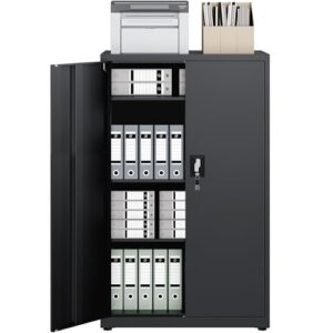 LAND·VOI Stahlschrank 4 Ebenen mit Schloss verstellbare Einlegeböden Doppeltüren Aktenschrank Werkzeugschrank für Büro Garage Haushalt Werkstatt 80x40x131.5 cm Schwarz