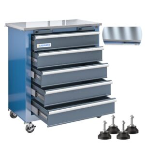 LARBANKE 5-Schubladen-Werkzeugwagen, Werkzeugschrank mit Rädern und Fußpolstern, Werkzeugschrank mit Sicherheitsverriegelungssystem und Edelstahloberteil, Kombiniert eine große Arbeitsfläche durch