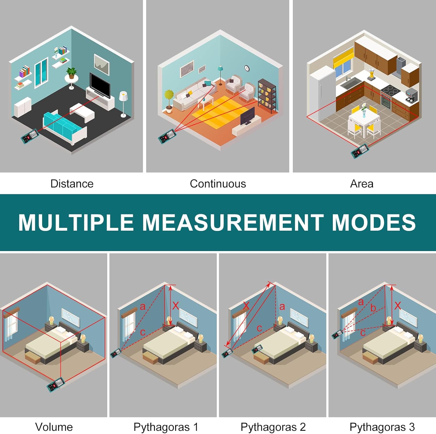 - Maximale Vielseitigkeit: Mit Funktionen für Fläche, Volumen, Pythagoras-Berechnungen sowie Addition und Subtraktion bist du für jede Messaufgabe gerüstet.