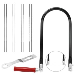 Laubsäge Set Laubsägebogen Metall Feinsäge Holz mit 8 Sägeblätter(4#6#8#10#) Laubsägen Mit Holzgriff für Metall und Holz Präzise Schnitte Gravur Kunsthandwerk Bügelsäge klein Laubsägeblätter 10 Stück