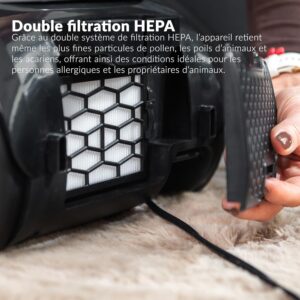 Dank des speziellen Filtrationssystems müssen Sie sich keine Sorgen um übermäßige Verschmutzungen im Motorinneren machen. Die Doppelfilter-Technologie hält Staubpartikel effektiv ab und stellt so sicher, dass der Motor geschont wird, was für eine langlebige Nutzung des Staubsaugers sorgt.