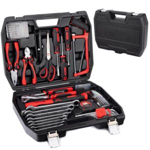 LEHMANN Werkzeug Set 65-teilig - Kunststoffkoffer mit Tragegriff - Werkzeuge mit gummiertem Griff - Werkzeugkoffer inkl. Schraubenschlüssel, Hammer, Zangen - Werkzeugset für Werkstatt & Haushalt