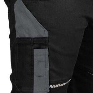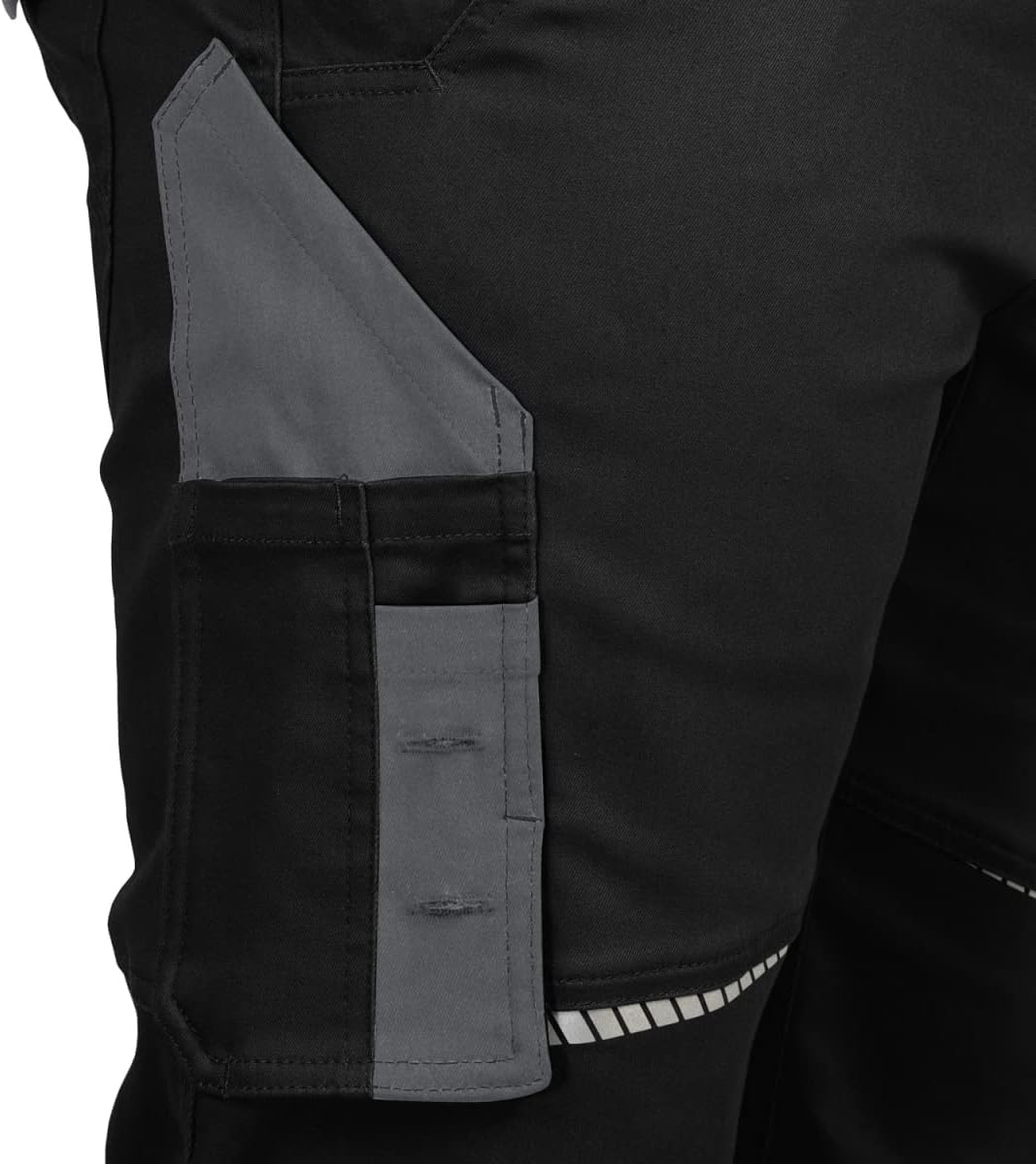 - 4-Wege-Stretch-Einsätze: Ermöglichen uneingeschränkte Mobilität bei knienden oder überkopf durchgeführten Tätigkeiten.