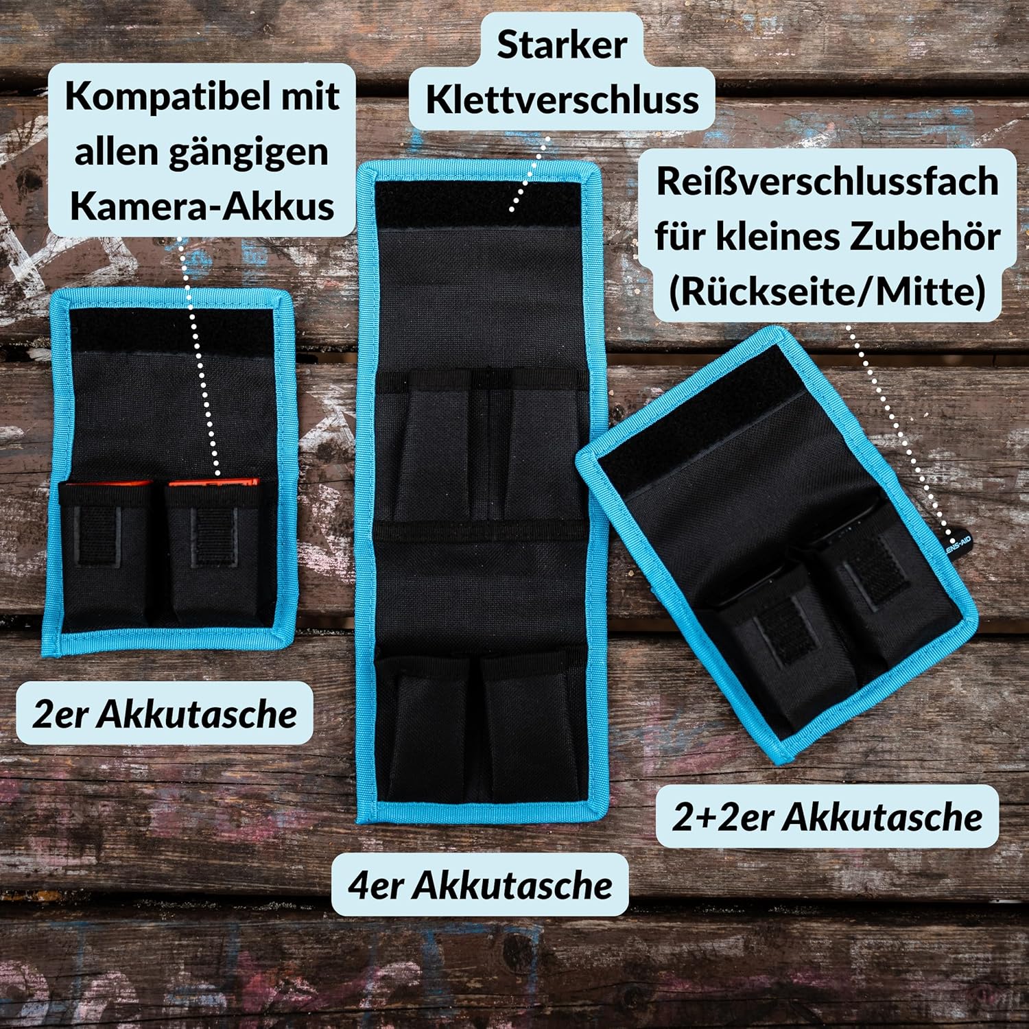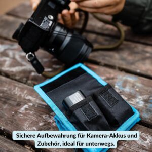 - Systematische Organisation: Platz für bis zu 4 Akkus (7 x 4,5 x 2,5 cm), was gezieltes Greifen statt Suchen im Rucksack ermöglicht.