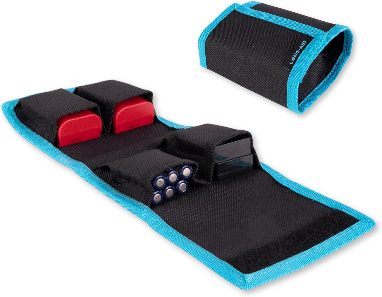 Die LENS-AID Aufbewahrungstasche ist so konzipiert, dass sie Platz für bis zu 4 Kamera-Akkus bietet. Durch das kompakte Design sorgt dies für eine effiziente Organisation Ihrer Ausrüstung in der Fototasche.