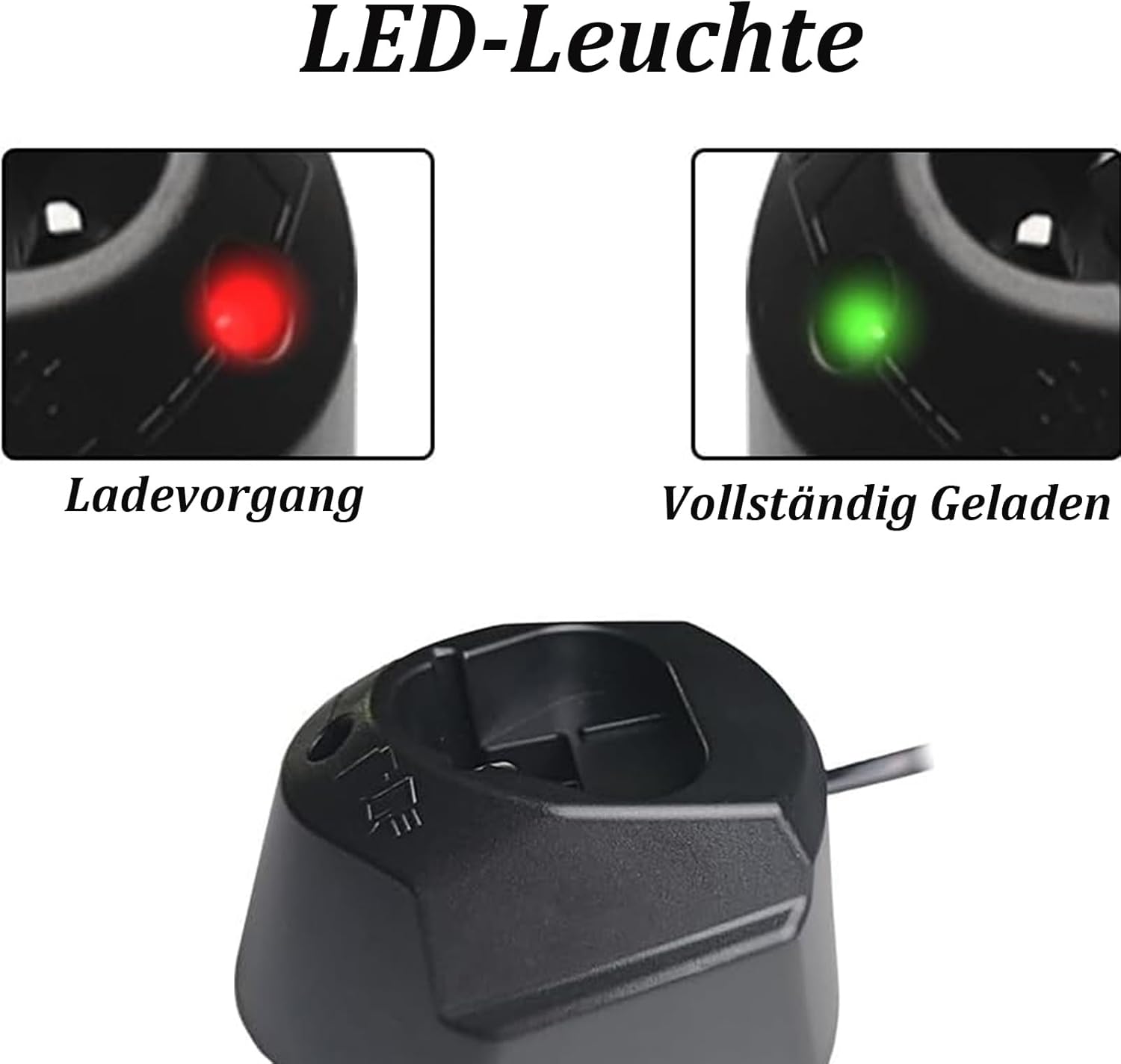 - Sichtbare Status-Kontrolle: Die intuitive LED-Anzeige zeigt dir ohne Rätselraten an, ob der Akku noch lädt oder bereits vollständig einsatzbereit für den nächsten Einsatz ist.