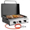 LIFERUN Tischgasgrill mit 4 Edelstahl-Brenner(9.6KW),groß Tischgrill mit Deckel(Grillfläche 74×35cm),Campinggrill Keramische Lackbeschichtung Grillplatte,Balkongrill für Familien,Gartenpartys,Feiern