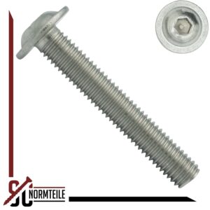 Die Linsenkopfschraube mit Flansch nach ISO 7380-2 stellt eine Verbindungsklasse dar, bei der Design und Funktion Hand in Hand gehen. Das Herzstück ist der Innensechskant-Antrieb, der besonders in tief liegenden Senkungen oder bei geringem Bauraum seine Stärken ausspielt, da der Steckschlüssel einen direkten, formschlüssigen Zugriff bietet.