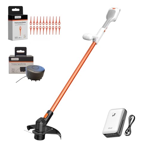 Litheli 25cm Rasentrimmer mit Akku, Akku Rasentrimmer mit Fadenspule und Ersatzmessern, 10000mAH Mobiler Batterien, Geeignet für Gartenrasen und Außenschnitt, Rasentrimmer