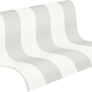 Das Design besticht durch breite Blockstreifen in Grau und Weiß, die für eine klare, strukturierte Optik sorgen. Diese zeitlose Gestaltung verleiht Ihren Räumen eine elegante und moderne Atmosphäre.