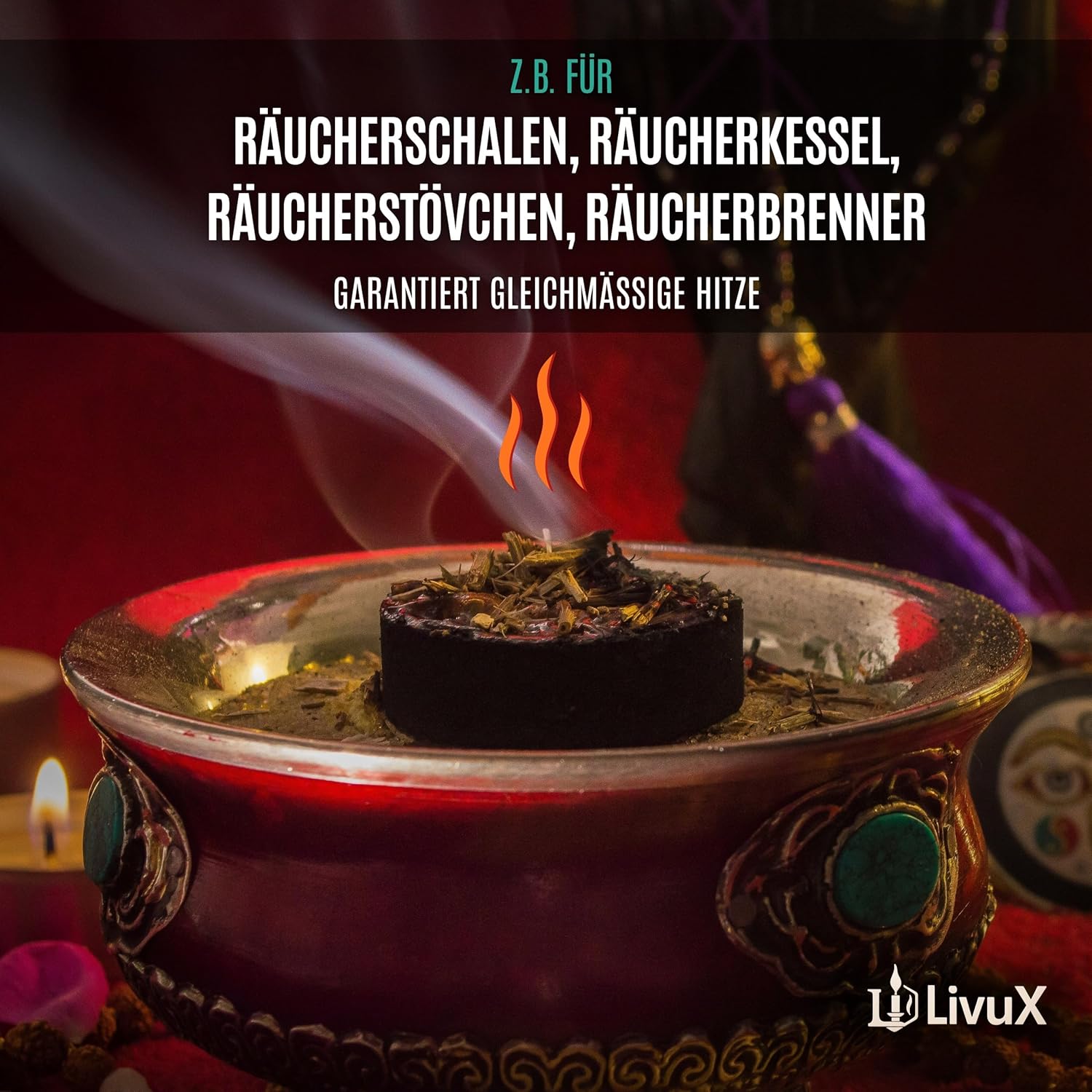 - Vielfältig einsetzbar: Perfekt für Räucherharze, lose Kräuter, Weihrauch oder auch spirituelle Rituale – sichere und saubere Kohlebasis.