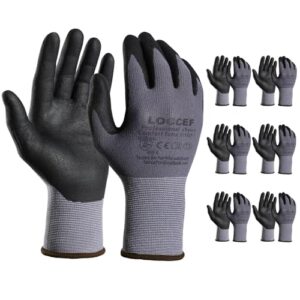 LOCCEF Arbeitshandschuhe Herren/Damen, 6 Paare - Nitril beschichtet, nahtlos gestrickte Nylon-Handschuhe für Heimwerken, Handwerk und Gartenarbeit(9/L, Grau-6 Paare)LOCCEF Arbeitshandschuhe Herren/Damen, 6 Paare – Nitril beschichtet, nahtlos gestrickte Nylon-Handschuhe für Heimwerken, Handwerk und Gartenarbeit(9/L, Grau-6 Paare)