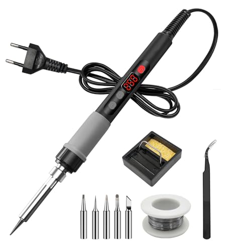 Lötkolben Set, Lötset 90W Lötstation mit Temperatur Einstellbar 180-520°C, Regelbar und EIN/AUS-Schalter mit 5 Lötspitzen, Lötkolbenständer, Lötzinn,Pinzette für Elektrische Arbeiten Reparaturen