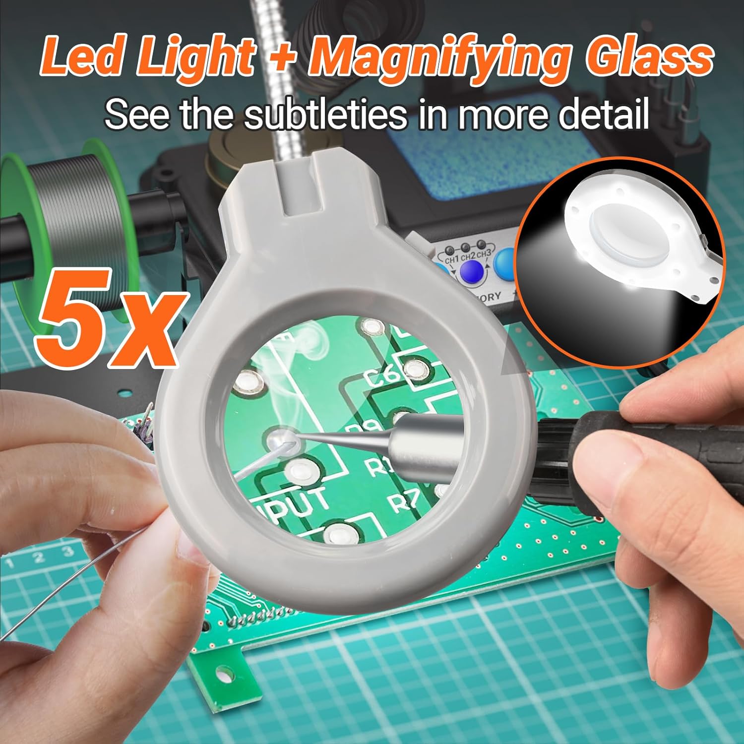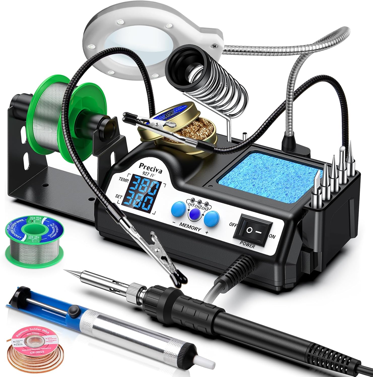- Komplettes Arbeitsset: Mit 5 Lötspitzen, Lupenhalterung mit 5-facher Vergrößerung und LED-Beleuchtung, zwei helfenden Händen und Reinigungszubehör direkt startklar