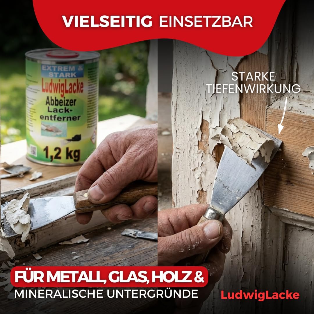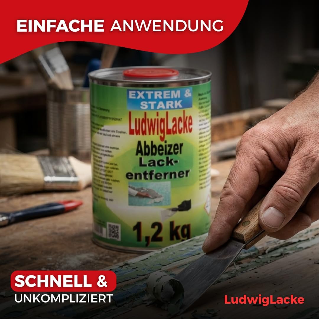 LudwigLacke Der Originale Abbeizer ist die professionelle Lösung für Heimwerker, Restauratoren und Handwerker, die hartnäckige Lackschichten ohne mühsames Schleifen entfernen müssen. Dieses kraftvolle Mittel löst zuverlässig mehrschichtige Altlacke von Holz und Metall und spart so bei Restaurierungsarbeiten wertvolle Zeit. Perfekt geeignet für den Einsatz in der Werkstatt oder bei anspruchsvollen Sanierungsprojekten.