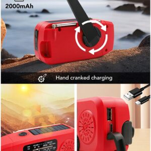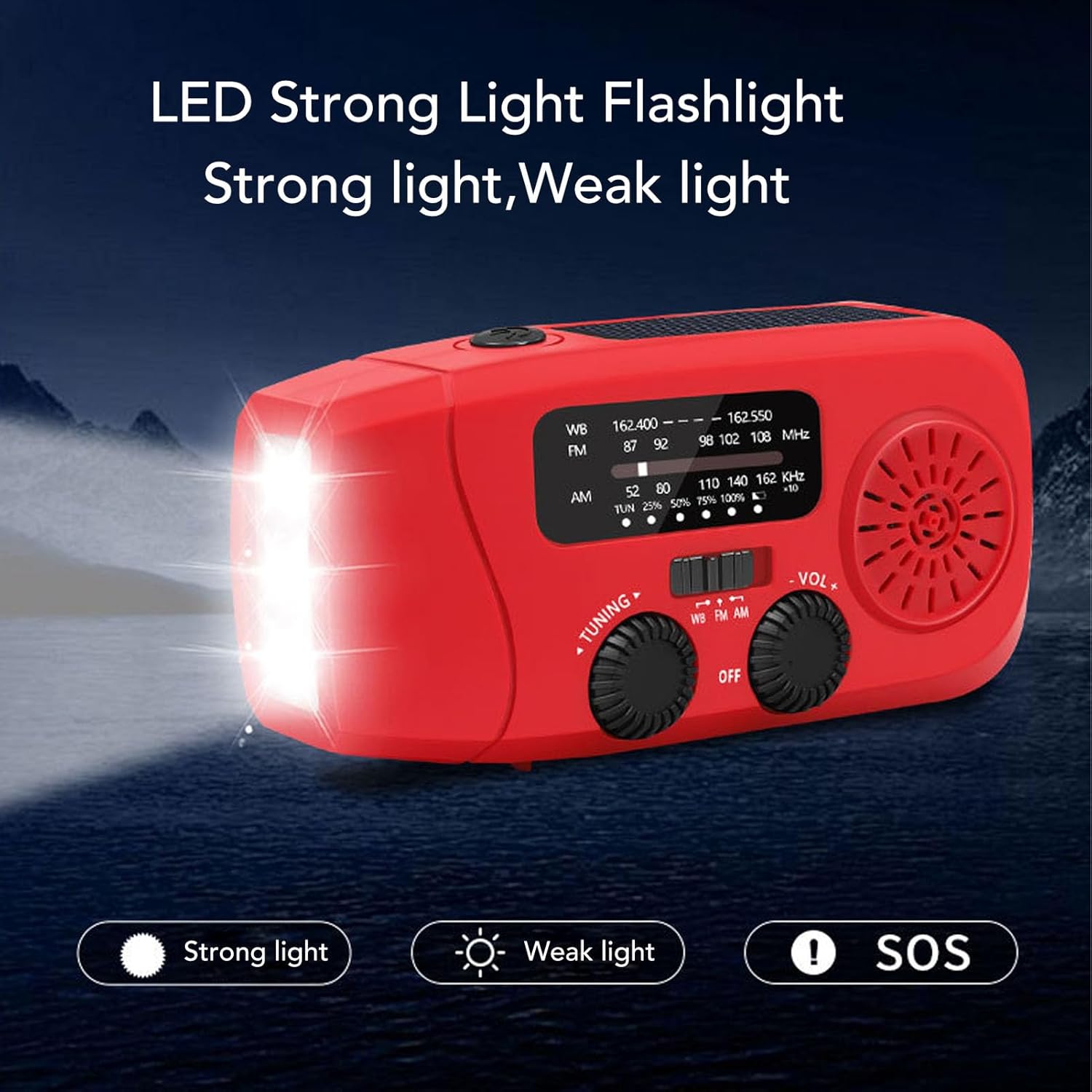 Luqeeg Tragbares AM/FM-Radio, Solar-Handkurbel Multifunktionales Wiederaufladbares Notfall-Wetterradio mit Taschenlampe Wasserdichtem Design Dreifacher Aufladung für Camping – Luqeeg