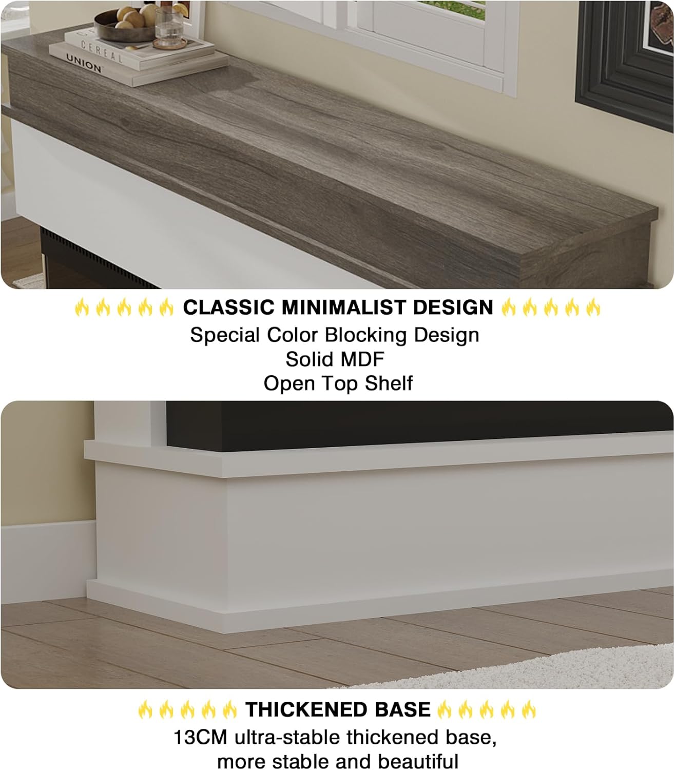 Das Gerät ist für den Innenbereich konzipiert. Empfehlenswert ist die Platzierung auf einem festen, tragfähigen Untergrund, wobei die 5,1 Zoll hohe Basis für eine sichere Standsicherheit sorgt. Es ist keine primäre Heizquelle für das ganze Haus, sondern dient dem Komfort und der Wohnraumaufwertung. Unser Team empfiehlt, den Kamin nicht in Feuchträumen zu installieren, um die Elektronik vor Korrosion zu schützen.