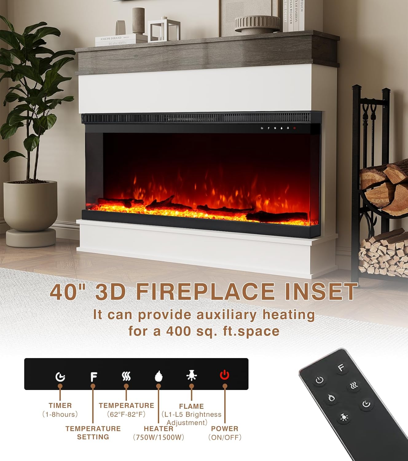 Der 40-Zoll-Kamin ist ideal für mittelgroße Räume konzipiert und kann eine Fläche von bis zu 37 Quadratmetern effizient beheizen. Dank der einstellbaren Wärmefunktion zwischen 18°C und 28°C lässt sich die Temperatur dabei komfortabel an Ihre individuellen Bedürfnisse anpassen.