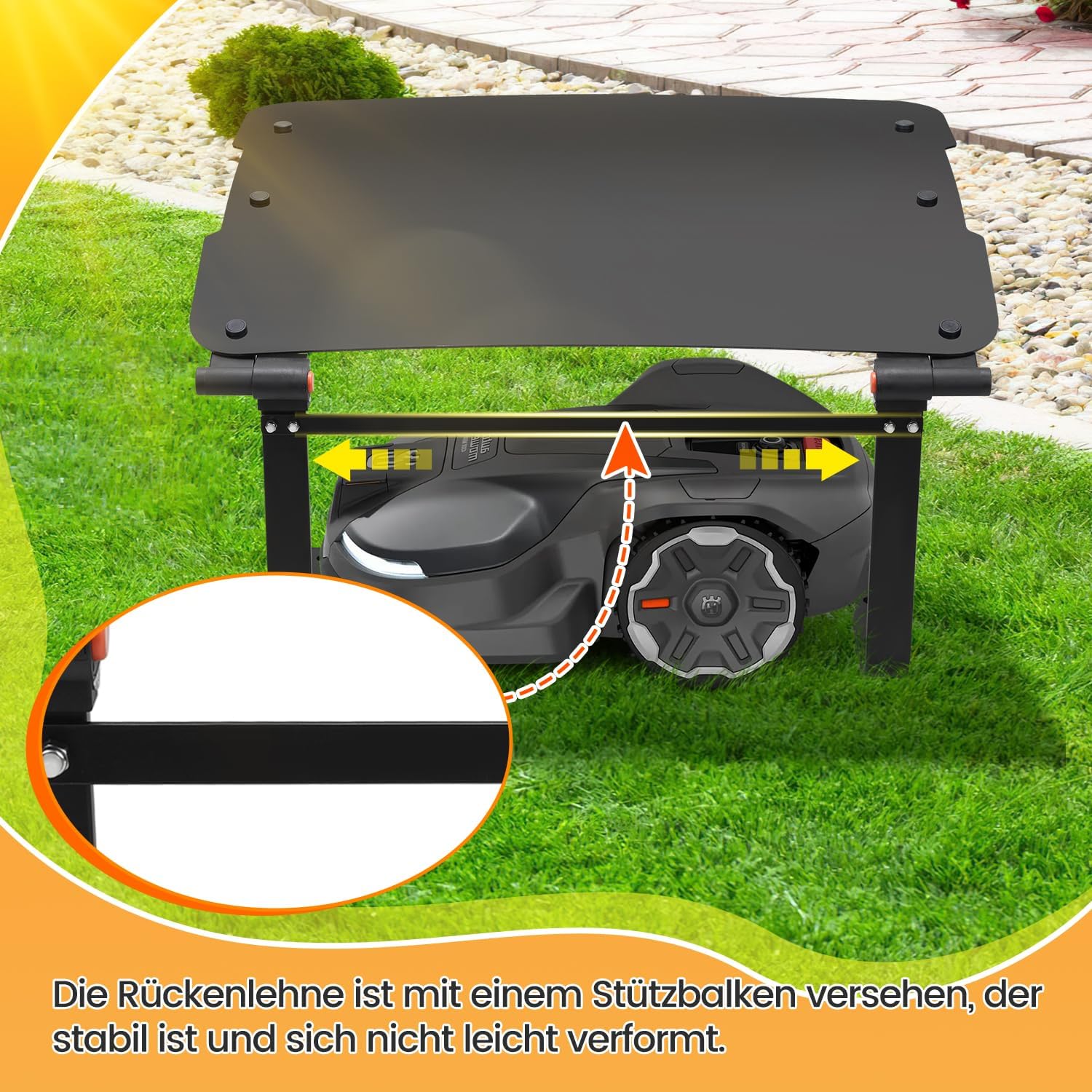 - Einfacher Zugang: Dank der klappbaren Dachkonstruktion erreichst du das Bedienfeld deines Mähers jederzeit bequem, ohne dich bücken zu müssen.