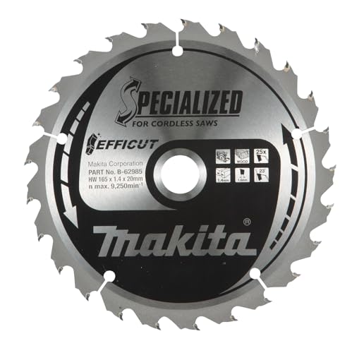 Makita B-62985 EFFICUT Kreissägeblatt Ø 165 x 1,4 x 20 mm, 25 Zähne, 23° Zahnwinkel, für saubere und schnelle Schnitte in Holz, für Akku-HandkreissägenMakita B-62985 EFFICUT Kreissägeblatt Ø 165 x 1,4 x 20 mm, 25 Zähne, 23° Zahnwinkel, für saubere und schnelle Schnitte in Holz, für Akku-Handkreissägen