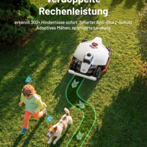 - Intelligente Hindernisvermeidung: Erkennt über 300 Hindernistypen in Echtzeit und passt seine Route automatisch an – schützt Gartenmöbel, Spielzeug und Haustiere