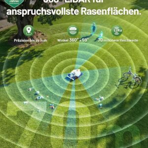- Keine Begrenzungskabel nötig: Installation in wenigen Minuten statt stundenlangem Verlegen von Kabeln – der LiDAR-Sensor erfasst den Garten automatisch und erstellt eine präzise 3D-Karte