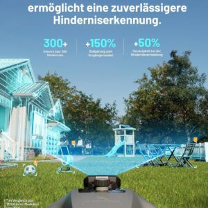 - Sicherheit bei Hindernissen: Der verbesserte KI-Prozessor erkennt über 300 verschiedene Objekte in Echtzeit, was Haustiere, Spielzeug oder Gartenmöbel schont.