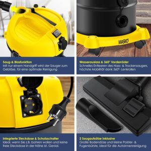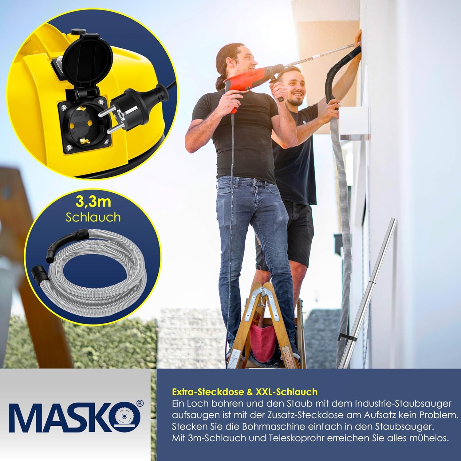 Der MASKO® 6IN1 Industriestaubsauger ist die All-in-One-Lösung für Handwerker, Werkstätten und anspruchsvolle Heimwerker. Mit diesem Gerät saugst du trockene und nasse Verschmutzungen, Asche und nutzt es sogar als Laubbläser – ohne ständigen Gerätewechsel. Die integrierte Steckdose macht ihn zum perfekten Begleiter beim Bohren, Schleifen und Sägen, indem Staub direkt an der Quelle abgesaugt wird.