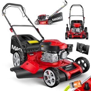 MASKO® Benzin Rasenmäher 5in1 | 51 cm Schnittbreite | 8- fache Schnitthöhenverstellung | 4 Takt OHV Motor 6,0 PS | 65 Liter Fangkorb| Inkl. Mulch- Kit, Seitenauswurf