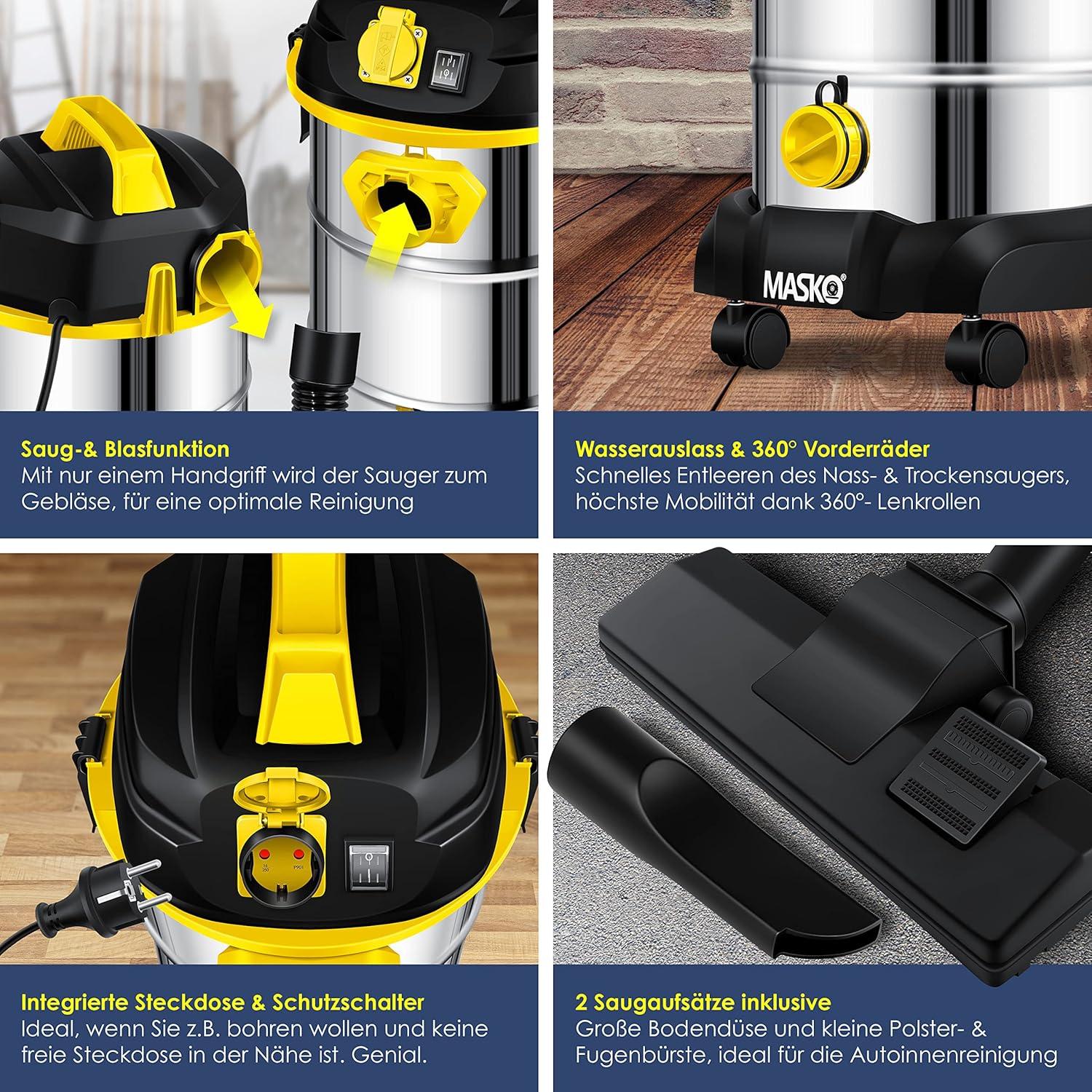MASKO® Industriestaubsauger 1800Watt Mit Steckdose Blasfunktion | Mehrzwecksauger Trocken-Saugen & Nass-Saugen | Industrie-Sauger mit & ohne Beutel | Wasser-Staubsauger beutellosMASKO® Industriestaubsauger 1800Watt Mit Steckdose Blasfunktion | Mehrzwecksauger Trocken-Saugen & Nass-Saugen | Industrie-Sauger mit & ohne Beutel | Wasser-Staubsauger beutellos