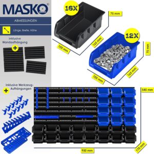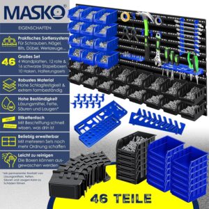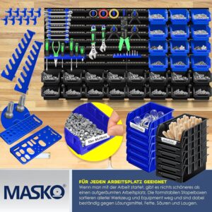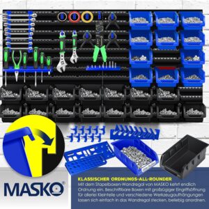 Das MASKO® Stapelboxen + Wandregal Set richtet sich an Handwerker, Heimwerker und Profis, die in ihrer Werkstatt oder Garage maximale Übersicht über ihre Kleinteile benötigen. Mit diesem 45-teiligen System schaffst du im Handumdrehen Ordnung und hast Schrauben, Bits und Werkzeuge stets griffbereit an einem zentralen Ort organisiert.
