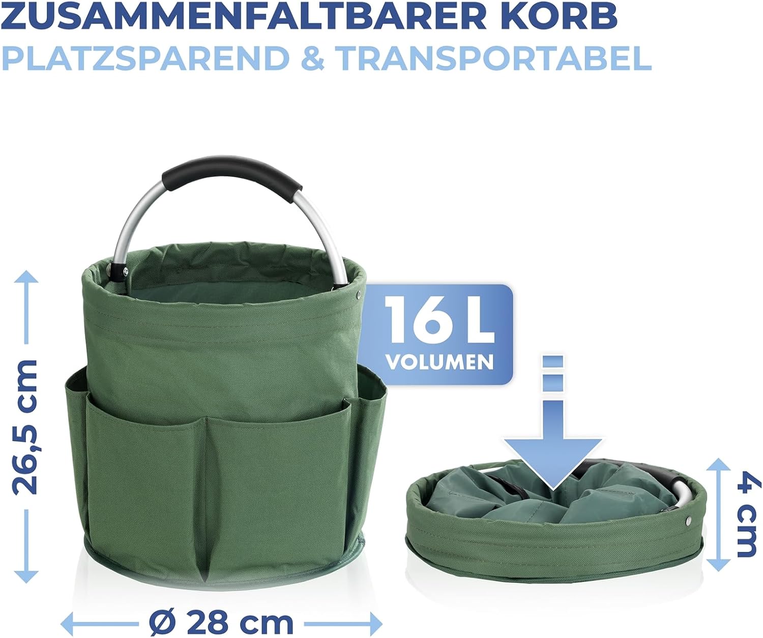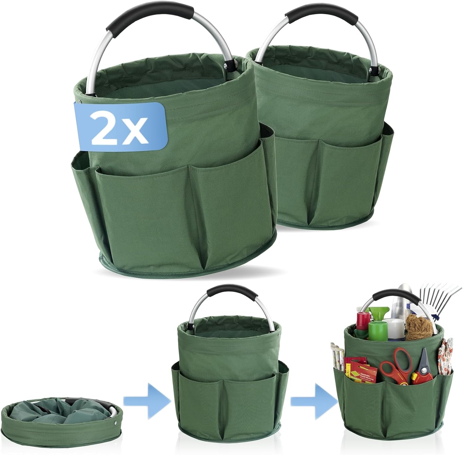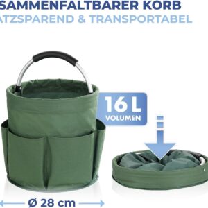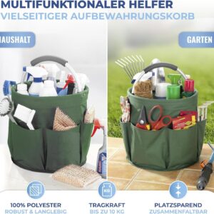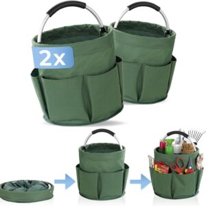 2 Rezensionen für Maximex Gartenwerkzeugtasche, 2er Set, 6 Außentaschen, 16 l Hauptfach, stabiler Garten Organizer, wasserabweisendes Polyester mit Aluminiumrahmen, gepolsterter Tragegriff, faltbar, Ø 28 x 26,5 cm,Grün