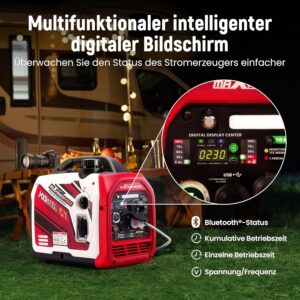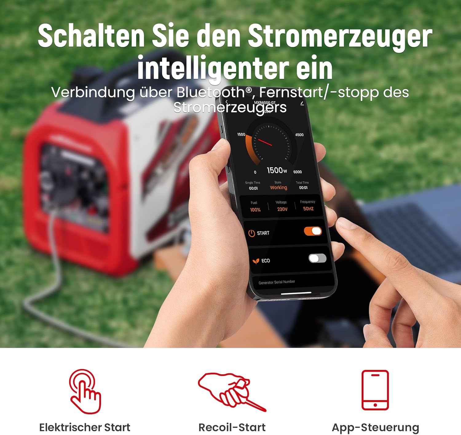 - Smarte Kontrolle via Bluetooth-App: Überwache Leistungsabgabe, Kraftstoffstand und Generatorstatus in Echtzeit direkt auf dem Smartphone – für absolute Transparenz.