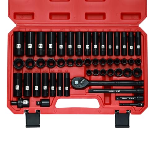 Mayouko Steckschlüssel-Set, 3/8-Zoll-Antrieb, 50-teilig, Standard SAE (5/40.6 cm-3/10.2 cm) und metrische Größe (8–22 mm), tief und flach, 6-Punkt, CR-V, 72-Zahn-Ratschenschlüsselgriff
