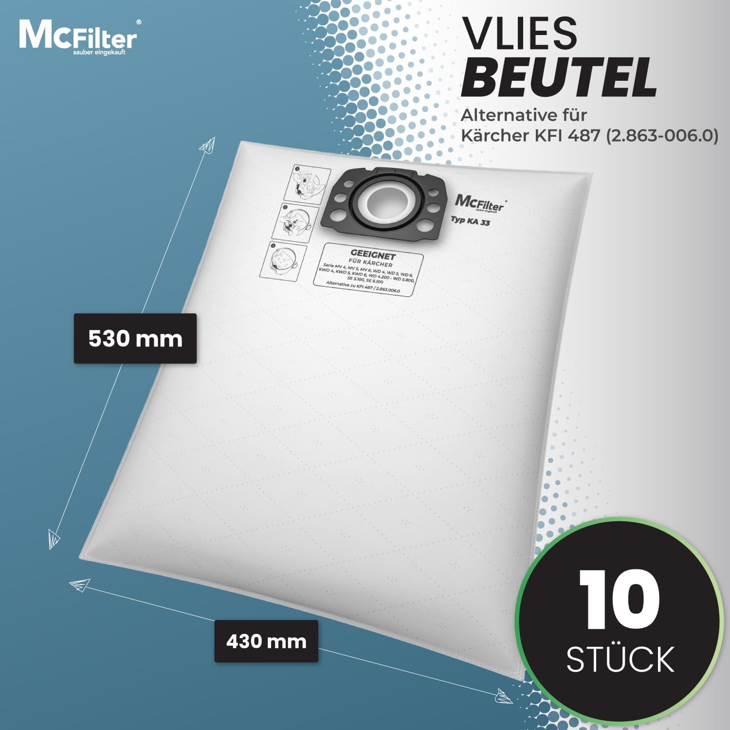 McFilter I 10 Staubsaugerbeutel + 1 Filter kompatibel mit Kärcher WD4 P S V-20/5/22, WD5 P V-25/5/22, WD6 P S V-30/6/22/T, MV4, MV5, MV6 Alternative für Kärcher KFI 487 wie KFI 4410