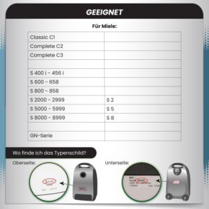 • Kompatibel mit – S 8000 – S 8999, S 8, S 5000 – S 5999, S 5, S 2000 – S 2999, S 2, S 800 – S 858, S 600 – S 658, Complete C3, Complete C2, Classic C1 I Classic C1 Ecoline Serie I S 8340 PowerLine I S 8340 EcoLine I S8360 Powerline I Complete C2 Tango I Complete C3 Cat&Dog