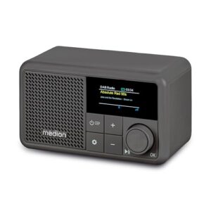 MEDION S66822 Tragbares Mini DAB+ Radio mit Bluetooth (Akku mit bis zu 6,5 Stunden, klein, dimmbares Farbdisplay, Teleskopantenne, Sleeptimer, Wecker, Snooze, AUX, USB-C) grau