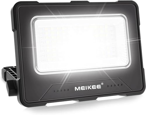 MEIKEE 80W LED Baustrahler 12000MAH Led Arbeitsleuchte Akku Strahler 4 Lichtmodi Campinglampe Tragbar 5 Helligkeiten Solar USB-Aufladung Akku Lampe für Camping, Garage, Bau, Reparatur, Notfall