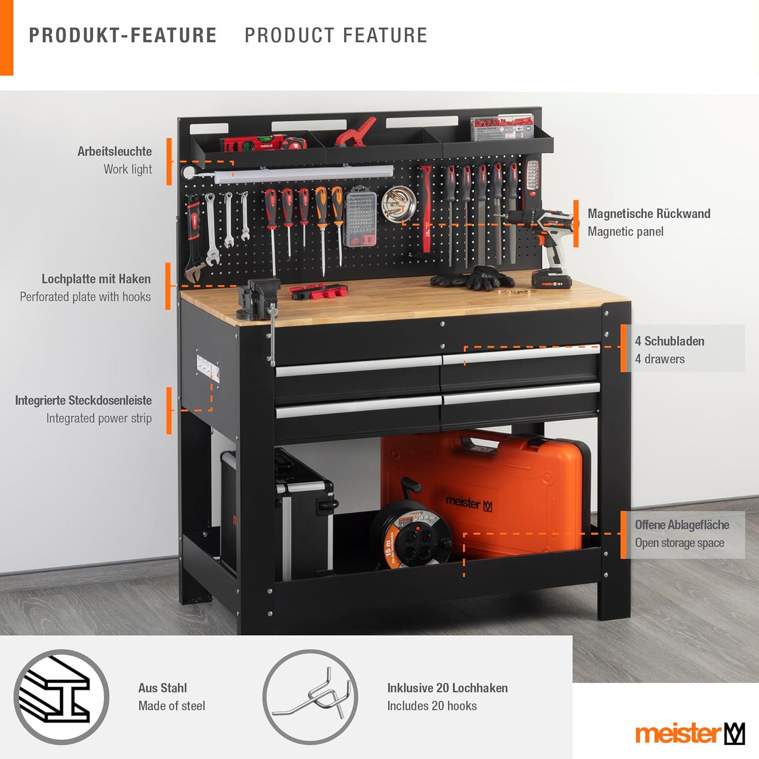 Vorteile des Produkts Meister Werkbank 1400 x 1140 x 610 mm