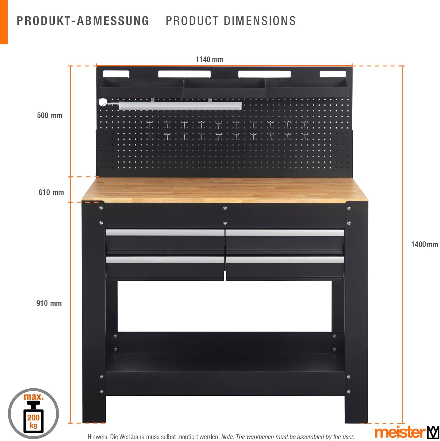Technische Eigenschaften für das Produkt Meister Werkbank 1400 x 1140 x 610 mm