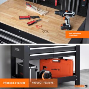 - Strukturierte Werkzeugorganisation: Vier Schubladen und eine individualisierbare Lochrückwand mit 20 Haken halten das Zubehör jederzeit griffbereit.